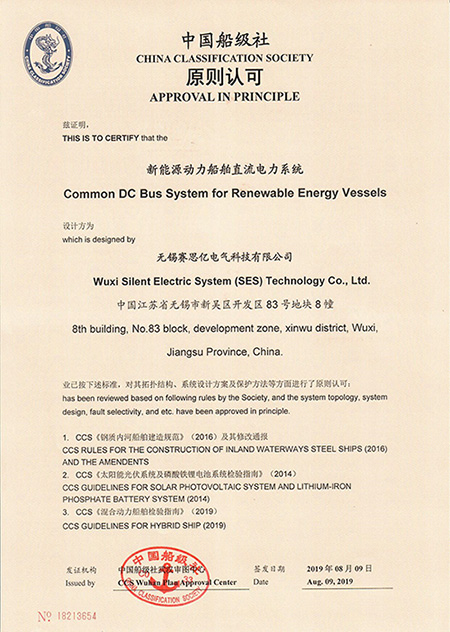 直流組網(wǎng)技術(shù)獲得中國船級社新能源動力原則認(rèn)可證書和中國船級社電力推進(jìn)系統(tǒng)設(shè)計(jì)認(rèn)可證明文件。