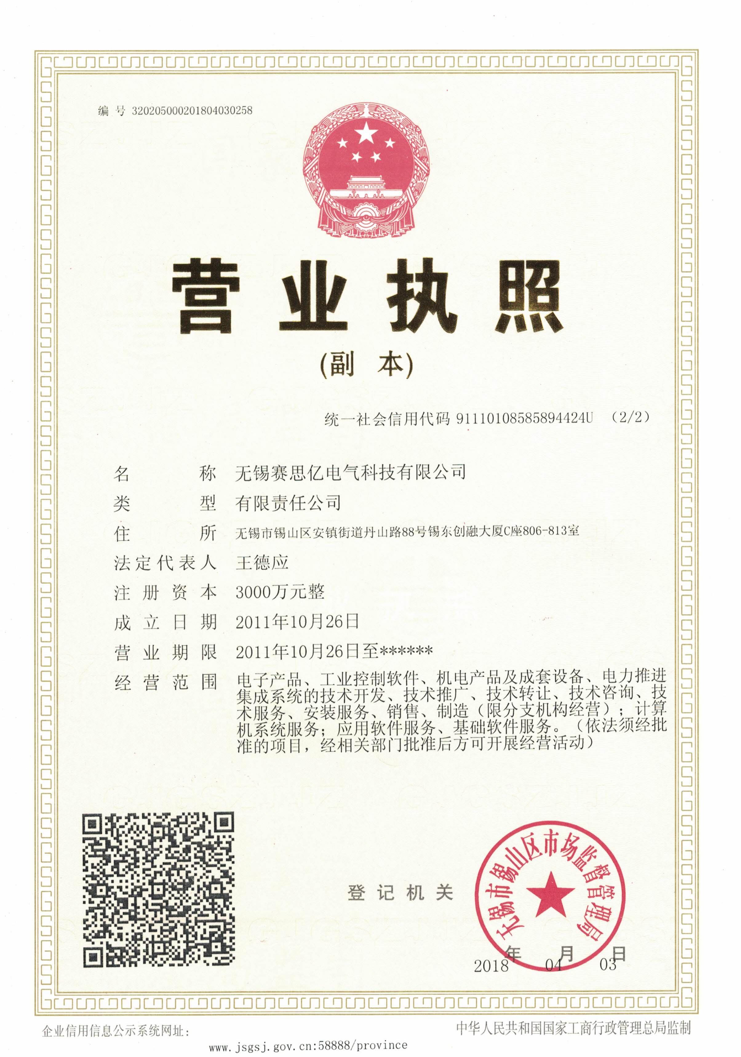 北京賽思億正式更名為“無錫賽思億電氣科技有限公司”