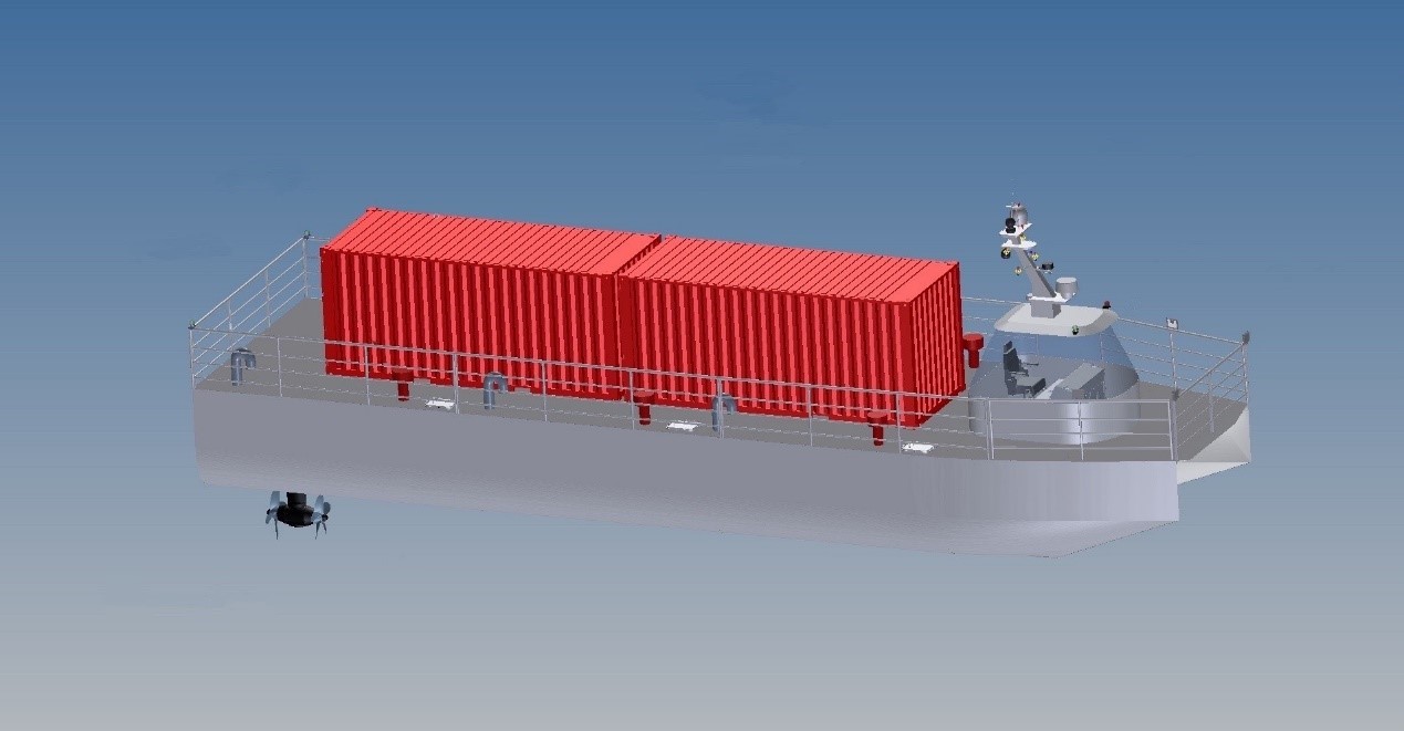 該船總長(zhǎng)19.9m,型寬5.5m,設(shè)計(jì)吃水0.9m。該無(wú)人船設(shè)有2臺(tái)200kW全回轉(zhuǎn)主推進(jìn)器、1臺(tái)30kW側(cè)推進(jìn)器,采用賽思億基于直流組網(wǎng)技術(shù)的S-Hybrid-R混合動(dòng)力推進(jìn)系統(tǒng),自動(dòng)化程度高,系統(tǒng)整體性能好,完全滿(mǎn)足無(wú)人船使用要求。