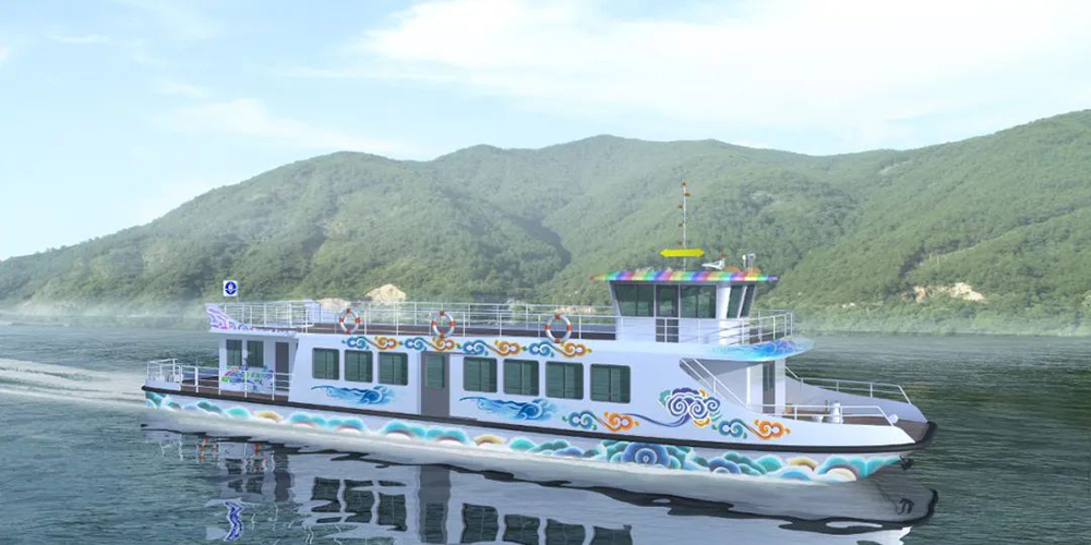 該船總長29.2m,型寬7.2m,型深1.8m,設(shè)計吃水1.0m,乘客150人,B級航區(qū),動力系統(tǒng)搭載賽思億S-Renewable新能源動力系統(tǒng),配置2組315kWh鋰電池,經(jīng)過賽思億集中式的直流母線變頻電控設(shè)備在直流母線進(jìn)行并網(wǎng),驅(qū)動2臺75kW的主推電機(jī)。賽思億S-Renewable新能源動力系統(tǒng)滿足該船各項環(huán)保要求,具備零排放、零污染、超靜音、節(jié)能環(huán)保等顯著優(yōu)勢,契合國家綠色低碳發(fā)展戰(zhàn)略。