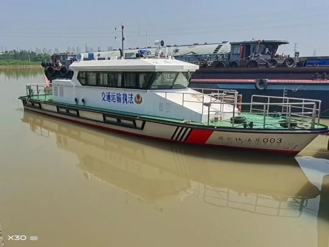 泰州市港航事業(yè)發(fā)展中心27米新能源港航指揮艇“蘇港航泰001”,搭載賽思億混合動力推進系統(tǒng),是新一代環(huán)保型公務船,按內(nèi)河A級公務船設計,具有高等級航道聯(lián)合執(zhí)法及應急指揮功能,船舶由江蘇省船舶設計研究所有限公司設計、宜興市興東船業(yè)有限公司建造。該船總長27.5m,型寬6.50m,型深1.8m,設計吃水1.20m,設計航速為21km/h,動力系統(tǒng)搭載賽思億混合動力推進系統(tǒng),配置 2臺120kW的發(fā)電機組,1套335kWh鋰電池組,經(jīng)過賽思億直流母線變頻電控設備在直流母線進行并網(wǎng),驅(qū)動2臺120kW的主推電機。