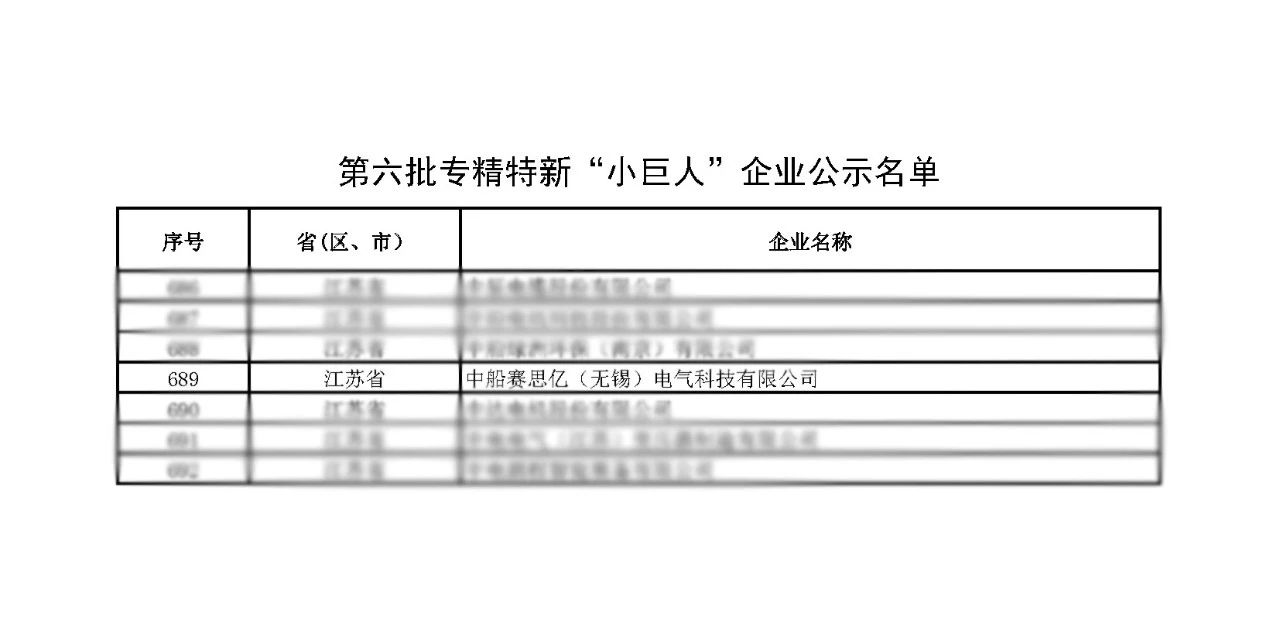 近日,江蘇省工信廳發(fā)布了第六批國家專精特新“小巨人”企業(yè)名單,中船賽思億(無錫)電氣科技有限公司在列。專精特新“小巨人”企業(yè)是“專精特新”中小企業(yè)中的佼佼者,是專注于細(xì)分市場、創(chuàng)新能力強、市場占有率高、掌握關(guān)鍵核心技術(shù)、質(zhì)量效益優(yōu)的排頭兵企業(yè)。