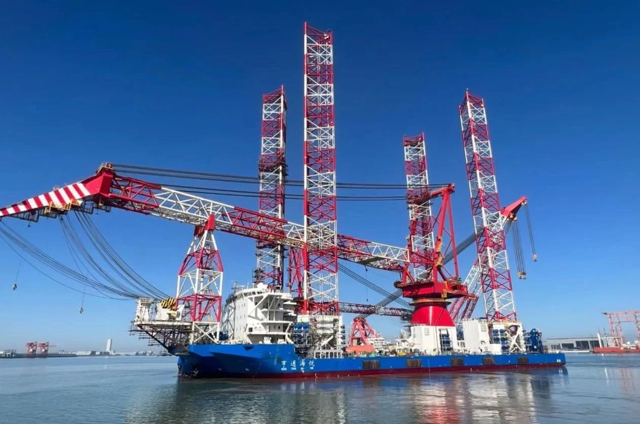由亨通集團(tuán)投資、上海佳豪設(shè)計(jì)、江蘇大津重工建造,搭載中船賽思億全套電力推進(jìn)系統(tǒng)總成的1600T大型深遠(yuǎn)海風(fēng)電安裝平臺“亨通海悅”近日在大唐海南儋州120萬千瓦海上風(fēng)電項(xiàng)目投入使用并成功安裝了12臺海上風(fēng)機(jī),順利完成首秀。