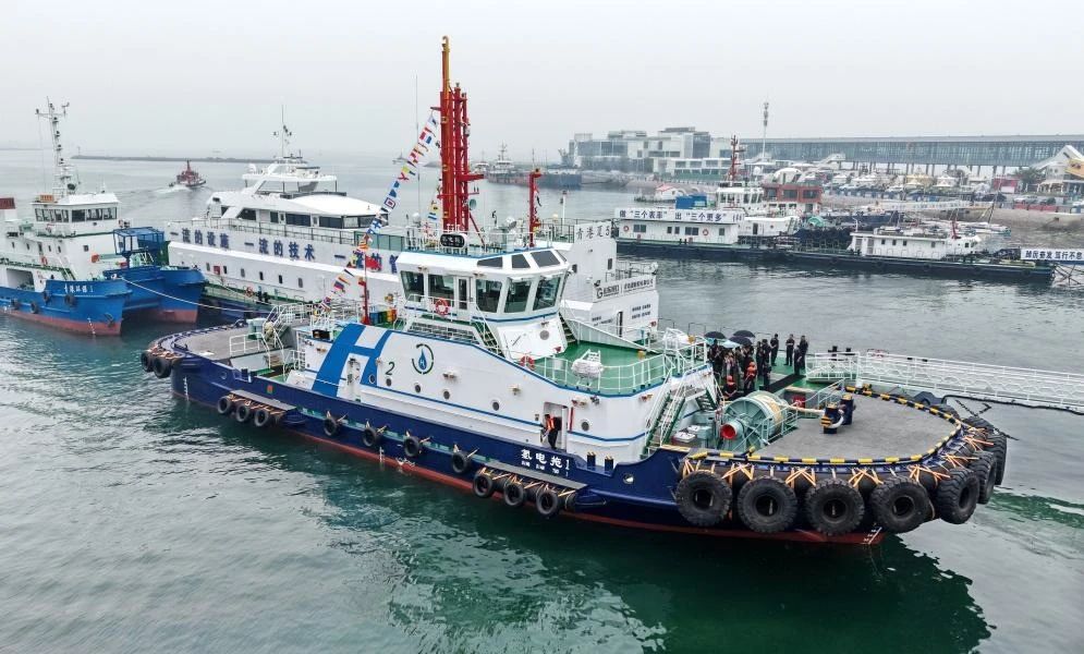 6月26日,馬力最大、鋰電池容量最大的全國首艘氫電拖輪“氫電拖1”輪在山東港口青島港正式入列。“氫電拖1”輪創(chuàng)新采用全球首創(chuàng)的 “氫燃料電池+液冷鋰電池”混合動力模式、北斗集成系統(tǒng)、全自動智能岸基充電等技術,填補了國內(nèi)多項空白。