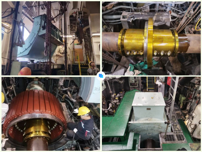“KANARIS” 177000DWT散貨船,船長282m,入級ABS船級社,改造方案搭載中船賽思億分半式永磁抱軸電機+變頻器+變壓器的軸發(fā)改造方案,軸發(fā)系統(tǒng)額定功率1200kW,同時對原船功率管理系統(tǒng)(PMS)和主機遙控系統(tǒng)(ECS)進行改造,可實現(xiàn)降功率運行及轉速低時自動啟動發(fā)電機組,保護電站及船舶穩(wěn)定運行。作為全流程 EPC 總承包項目,中船賽思億全程主導了從前期3D掃描、方案布置設計、生產(chǎn)制造到安裝及調(diào)試等全鏈條服務。
