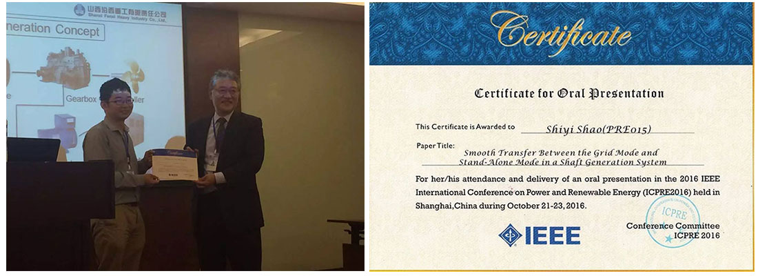 精彩的主題演講及大會報(bào)告之后,會議邀請優(yōu)秀論文的作者北京賽思億副總經(jīng)理邵詩逸在專題會議報(bào)告廳做了題為《Smooth Transfer Between the Grid Mode and Stand-Alone Mode in a Shaft Generation System》(軸帶發(fā)電系統(tǒng)中并網(wǎng)模式和獨(dú)網(wǎng)模式之間的平滑切換)的報(bào)告。該課題為軸帶發(fā)電系統(tǒng)應(yīng)用中的關(guān)鍵難題,而這一難題的解決可以為用戶提供功能更強(qiáng)大、使用體驗(yàn)更好的軸帶發(fā)電系統(tǒng)。